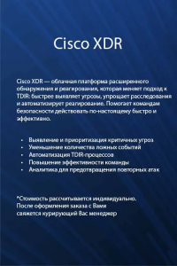 Cisco XDR — это облачная платформа расширенного обнаружения и реагирования (Extended Detection and Response), созданная для того, чтобы существенно упростить и усилить работу команд безопасности. Решение объединяет данные из сетей, конечных точек, облачных сервисов и других систем защиты, автоматически выявляя значимые угрозы, ускоряя расследование инцидентов и обеспечивая быстрое реагирование одним кликом.