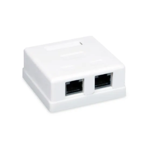 Для внешнего монтажа. Корпус настенной розетки состоит из основания и крышки. Конструкция выполнена из высококачественного пластика. Внутри расположены 2 модуля RJ-45, FTP, стандарта категории 6. Крепёжные элементы для монтажа включены в комплект. Корпус крепится к поверхности при помощи двух винтов и шурупов.