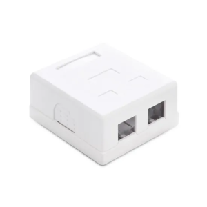 Для внешнего монтажа. Корпус настенной розетки состоит из основания и крышки. Конструкция выполнена из высококачественного пластика. Внутри расположены 2 модуля RJ-45, UTP, стандарта категории 5e. Крепёжные элементы для монтажа включены в комплект. Корпус крепится к поверхности при помощи двух винтов и шурупов.