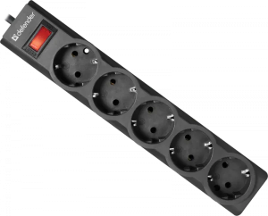 Сетевой фильтр Defender ES 5 метров, 5 розеток, Предохранитель, Черный, original