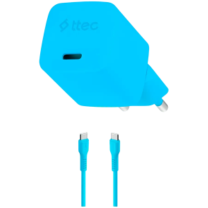ttec SmartCharger GAN 20W PD Travel Fast Charger + USB-C - USB-C 3A Cable 120cm, Neon Blue