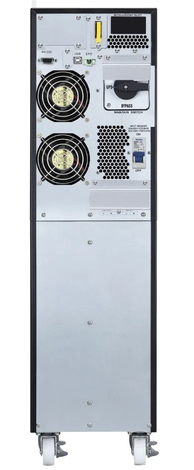 is 3:1Overview Presentation High quality, Double-conversion On-line UPS designed for essential power protection needs even in the most unstable power conditions. Delivery time Usually in stock Key features Operating time with 6000 W load Min.-max.: 600-6000 W 4min 1s Max. used capacity 100% Primary Input Voltage 230 V Product Type Uninterruptible Power Supply (UPS) Other Input Voltage 220 V 240 V Primary Output Voltage 230 V Other Output Voltage 220 V 240 V Nominal Power [W] 6000 W Nominal Power, VA 6000 VA Output Connection Type Permanent Three-Wire (1P + N + E) 1 Provided Equipment 1 USB Cable 1 RS-232 Configuration Cable 1 Operation Manual Easy UPS On-Line Series Batteries and Runtime Runtime View Runtime Graph Efficiency View Efficiency Graph Battery Type Lead-Acid Battery Battery Voltage 192 V Extended Runtime Option 0 Pre-Installed Batteries 0 Free Battery Slots 0 Typical Recharge Time 4 h Battery Life 3…5 year(s) Charger Capacity Power consumption (W) 235 W nominal General Number of slots occupied by power modules 0 Number of slots not occupied by power modules 0 spare No Physical parameters Colour Black (RAL 7010) Height 685 mm Width 190 mm Depth 374 mm Product weight 54 kg Mounting location Front Fastening type No preference Mounting type Non-rack-mount USB-compatible Yes Mounting position Vertical Input Input voltage limits 110...300 V 60 % load 176...300 V full load Number of input connections 1 Non-detachable three-wire (1P + N + E) Network frequency 40–70 Hz autosensing Output Maximum set power (VA) 6000 VA Maximum set power (W) 6000 W output frequency 50/60 Hz +/- 3 Hz synchronized with the mains Harmonic distortion 1 % UPS type Topology Double conversion Waveform type Sine wave Efficiency 94% (full load) Additional information Output voltage selection 220, 230 or 240 V Bypass type Internal bypass (automatic and manual) Crest factor 3:1 Conformity Certifications CE UKCA EAC TISI Standards EN/IEC 62040-1:2019/A11:2021 EN/IEC 62040-2:2006/AC:2006 EN/IEC 62040-2:2018 Environmental parameters Ambient operating temperature 0…40 °C Relative humidity 0…95 % non-condensing Altitude 0...3000 m Ambient storage temperature -15…60 °C Storage relative humidity 0…95 % non-condensing Storage altitude 0…15000 m Acoustic level 55 dBA Heat dissipation 1172 ‰ IP Rating IP20 Communication and admin alarm Alarm when on battery : distinctive low battery alarm : overload continuous tone alarm Emergency Power Off (EPO) Yes Free slots 1 Control panel Multi-function LCD status and control panel Surge and filter protection Surge energy rating 600 JOverview Presentation High quality, Double-conversion On-line UPS designed for essential power protection needs even in the most unstable power conditions. Delivery time Usually in stock Key features Operating time with 6000 W load Min.-max.: 600-6000 W 4min 1s Max. used capacity 100% Primary Input Voltage 230 V Product Type Uninterruptible Power Supply (UPS) Other Input Voltage 220 V 240 V Primary Output Voltage 230 V Other Output Voltage 220 V 240 V Nominal Power [W] 6000 W Nominal Power, VA 6000 VA Output Connection Type Permanent Three-Wire (1P + N + E) 1 Provided Equipment 1 USB Cable 1 RS-232 Configuration Cable 1 Operation Manual Easy UPS On-Line Series Batteries and Runtime Runtime View Runtime Graph Efficiency View Efficiency Graph Battery Type Lead-Acid Battery Battery Voltage 192 V Extended Runtime Option 0 Pre-Installed Batteries 0 Free Battery Slots 0 Typical Recharge Time 4 h Battery Life 3…5 year(s) Charger Capacity Power consumption (W) 235 W nominal General Number of slots occupied by power modules 0 Number of slots not occupied by power modules 0 spare No Physical parameters Colour Black (RAL 7010) Height 685 mm Width 190 mm Depth 374 mm Product weight 54 kg Mounting location Front Fastening type No preference Mounting type Non-rack-mount USB-compatible Yes Mounting position Vertical Input Input voltage limits 110...300 V 60 % load 176...300 V full load Number of input connections 1 Non-detachable three-wire (1P + N + E) Network frequency 40–70 Hz autosensing Output Maximum set power (VA) 6000 VA Maximum set power (W) 6000 W output frequency 50/60 Hz +/- 3 Hz synchronized with the mains Harmonic distortion 1 % UPS type Topology Double conversion Waveform type Sine wave Efficiency 94% (full load) Additional information Output voltage selection 220, 230 or 240 V Bypass type Internal bypass (automatic and manual) Crest factor 3:1 Conformity Certifications CE UKCA EAC TISI Standards EN/IEC 62040-1:2019/A11:2021 EN/IEC 62040-2:2006/AC:2006 EN/IEC 62040-2:2018 Environmental parameters Ambient operating temperature 0…40 °C Relative humidity 0…95 % non-condensing Altitude 0...3000 m Ambient storage temperature -15…60 °C Storage relative humidity 0…95 % non-condensing Storage altitude 0…15000 m Acoustic level 55 dBA Heat dissipation 1172 ‰ IP Rating IP20 Communication and admin alarm Alarm when on battery : distinctive low battery alarm : overload continuous tone alarm Emergency Power Off (EPO) Yes Free slots 1 Control panel Multi-function LCD status and control panel Surge and filter protection Surge energy rating 600 J