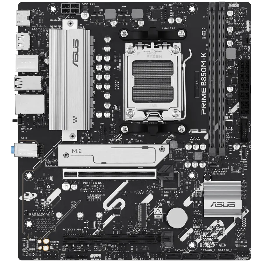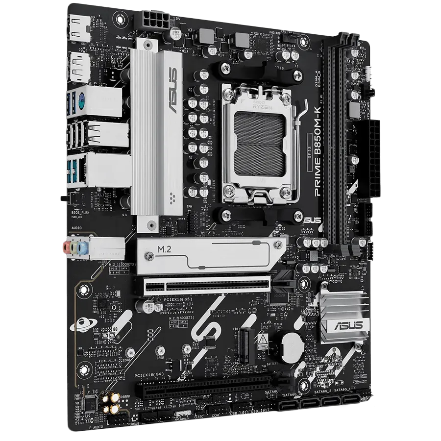 ASUS Main Board Desktop Socket AM5 AMD B850 Chipset 2 x DIMM slots, max. 128GB, DDR5 1 x DisplayPort 1 x HDMI 2 x M.2 4 x SATA micro-ATX Form Factor