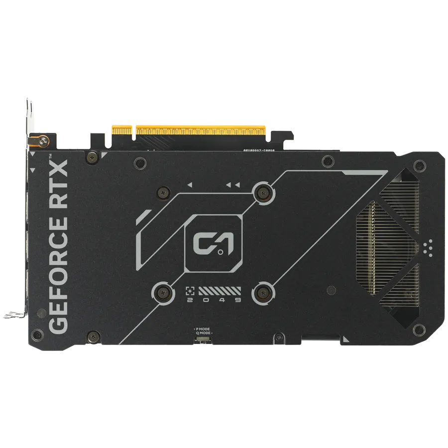 GeForce RTX™ 4060 серии Dual имеет гладкое чёрное покрытие. Благодаря двум большим 95-мм вентиляторам и отверстиям повышенной площади на задней панели видеокарты, видеокарта обеспечивает конкурентоспособные эффективность охлаждения и акустические характеристики. Тонкая RGB-подсветка на задней панели также добавляет компьютеру визуальный стиль, не отвлекая при этом слишком много внимания.