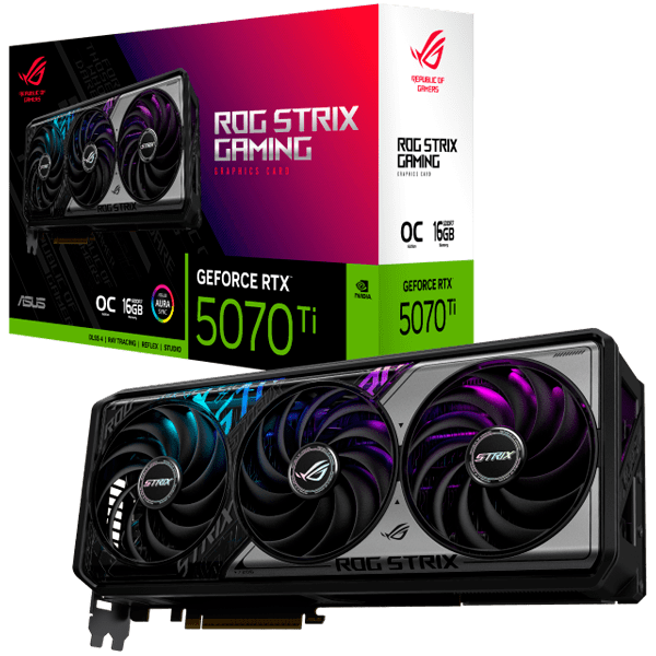 Премиальная производительность ROG Strix GeForce RTX 5070 Ti, оснащенная передовой системой охлаждения с осевым вентилятором, паровой камерой, фазообменной термопрокладкой GPU и дизайном MaxContact, снижает температуру GPU для достижения более высокой производительности. Система Aura sync предоставляет безграничные возможности для персонализации с помощью цветовых или функциональных эффектов.