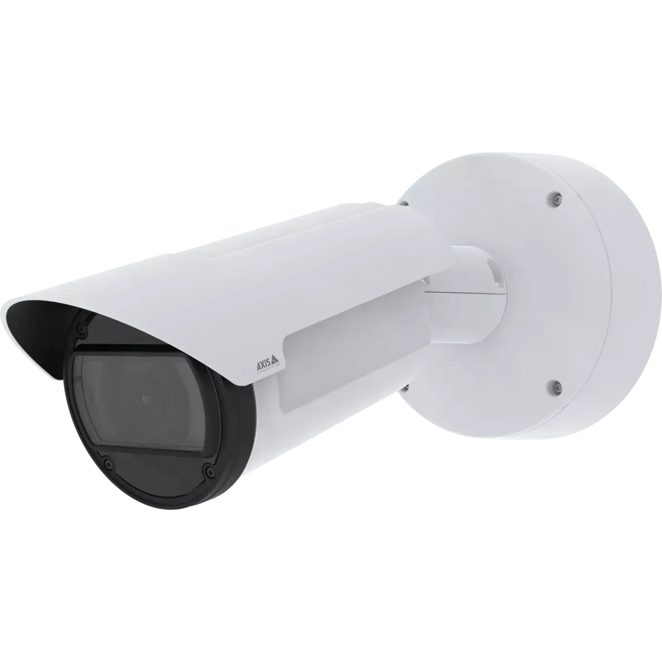 A rugged outdoor fixed bullet camera with 2 MP (1080p) resolution, designed for 24/7 video surveillance. It offers NEMA 4X, IP66, IP67, and IK10 protection ratings. It features a built-in deep learning processing unit (DLPU). It supports Forensic WDR, Lightfinder 2.0, and OptimizedIR—energy-efficient 850 nm IR illumination. The 4.3–137 mm varifocal lens offers 32x optical zoom, a horizontal viewing angle of 60° to 2.3°, and remote zoom and autofocus. Supports multiple, individually configurable video streams: H.264/H.265 with Zipstream, Motion JPEG. 2 MP video at up to 90 fps, with WDR up to 25/30 fps. Features: AXIS Object Analytics, Motion Detection, Impact and Active Sabotage Detection, AXIS Edge Vault with a FIPS-certified TPM for enhanced cybersecurity. Support for corridor format, lens distortion correction, defog, electronic image stabilization, and scene profiles. Audio input and a supervised I/O port are included, as well as a microSD slot for local storage. MQTT support. A built-in mount allows for easy wall and ceiling mounting. Operating temperature range: -40°C to +60°C (-40°F to 140°F). Power: PoE Class 4 (IEEE 802.3at) 10-28 VDC or 20-24 VAC Additional: Supports 30 W PoE output for powering an additional device (requires Axis Midspan 60 W PoE injector, IEEE 802.3bt Type 3 Class 6 standard) Included: Removable sunshield, IP66/67-rated sealed cable entries, optional IDC connectors Power supply or PoE injector not included.