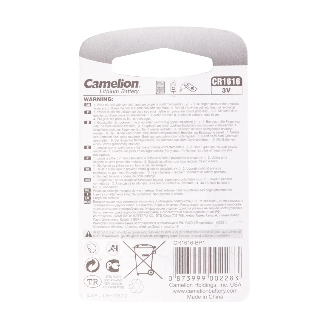 Батарейка CAMELION Lithium CR1616-BP1