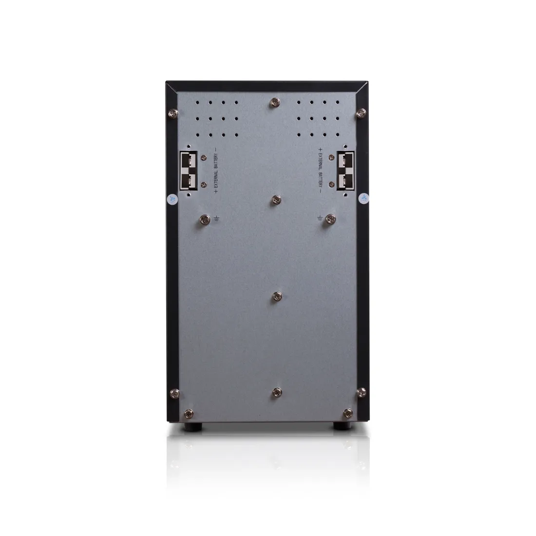 Используется для защиты питания файловых серверов и АТС, а также любого другого оборудования, предъявляющего повышенные требования к качеству сетевого электропитания. Принцип работы состоит в двойном преобразовании (double conversion) тока. Сначала входное переменное напряжение преобразуется в постоянное, затем обратно в переменное напряжение с помощью обратного преобразователя (инвертора). При потере питания в городской сети, время переключения в автономный режим равно нулю. ИБП с внешним подключением батарейного блока, позволяет индивидуально конфигурировать время автономной работы. ИБП оснащен интерфейсными портами USB/RS-232, благодаря которым можно наблюдать за параметрами работы ИБП. Пришла на замену модели PTX-3KL-LCD