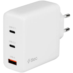 ttec SmartCharger Trio GAN 120W PD Travel Charger 2 USB-C+USB-A, white