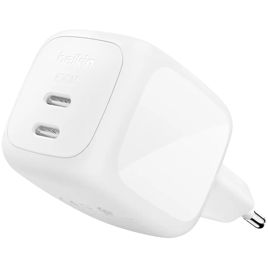 BELKIN 67w Dual USB-C PD wall Charger with PPS, White