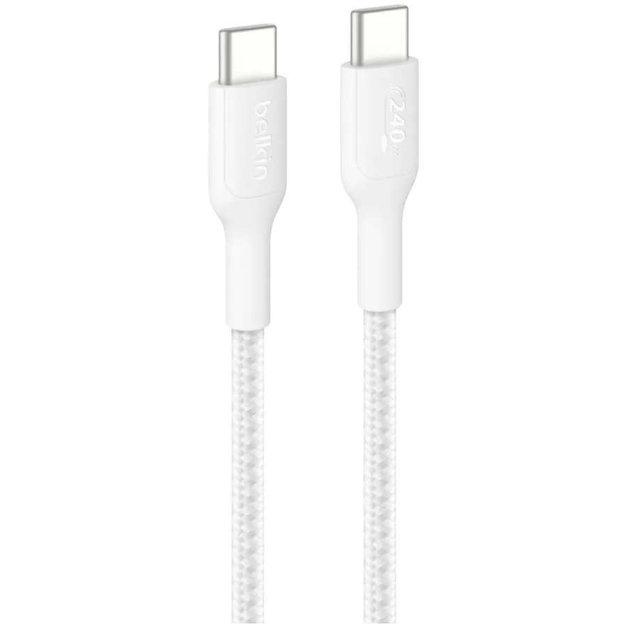 BELKIN C - C CBL 240W 2.0, BRAIDED PCR, 2M, WHITE