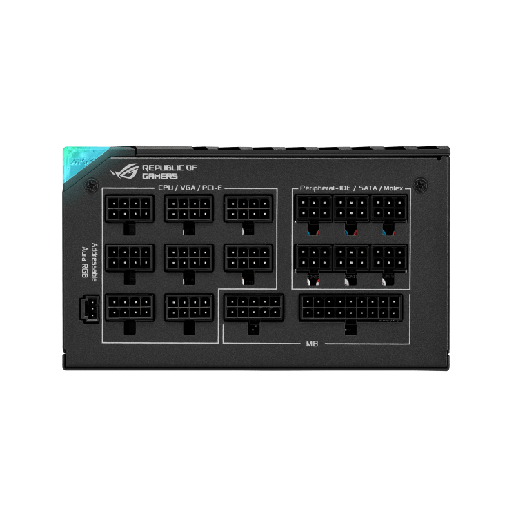 ROG Thor 1200W Platinum III обеспечивает максимальную мощность и стабильность, необходимые геймерам. MOSFET GaN нового поколения обеспечивает превосходную эффективность, а функция «GPU-First» с запатентованным интеллектуальным стабилизатором напряжения гарантирует высочайшую производительность и стабильность. Кроме того, имеется режим Turbo Mode для максимального охлаждения при разгоне или других высоких нагрузках. ROG Thor 1200W Platinum III также оснащен фирменным OLED-дисплеем Thor, который теперь усовершенствован для удобного магнитного крепления — его можно перемещать на любую сторону блока, чтобы установить вентилятор вверх или вниз.