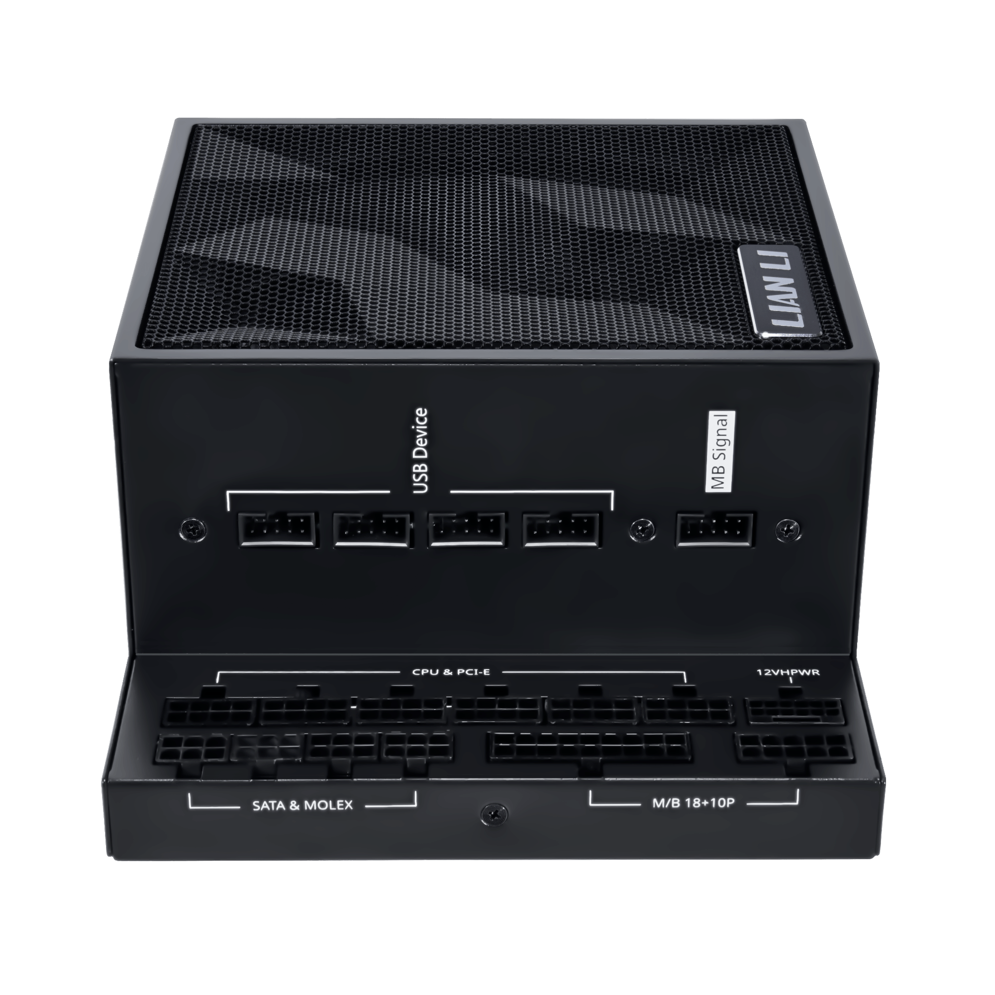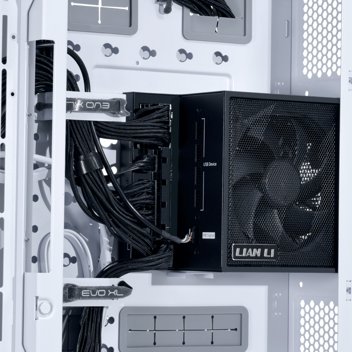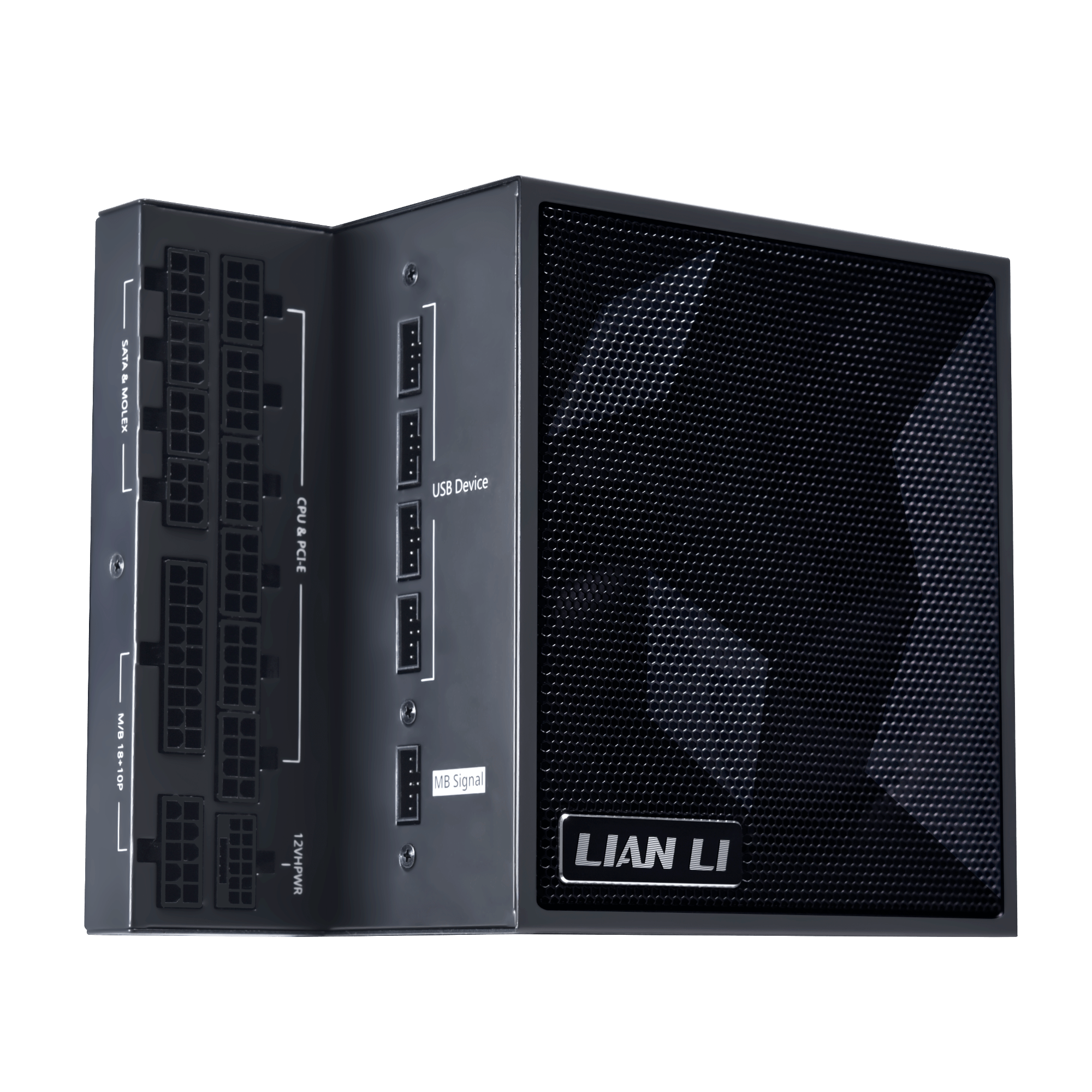 Lian Li EG1000G — это блок питания из серии EDGE Gold, мощностью 1000 Вт, с сертификацией 80 PLUS Gold и соответствием стандарту ATX 3.1. Он выполнен в уникальном L-образном дизайне, что делает его идеальным для корпусов с двумя отсеками, где блок питания устанавливается вертикально. Оснащён съёмным хабом USB/PWM с 4 портами USB 2.0 и 6 разъёмами для вентиляторов, что упрощает подключение устройств и управление кабелями. Поддерживает PCIe 5.1 с двумя разъёмами 12V-2x6 (600 Вт каждый), обеспечивая совместимость с современными видеокартами. Вентилятор 120 мм с подшипником FDB обеспечивает тихую работу, а магнитный пылевой фильтр облегчает обслуживание. Полностью модульные плетёные кабели с предустановленными гребёнками добавляют удобства и эстетики. Доступен в чёрном и белом цветах.