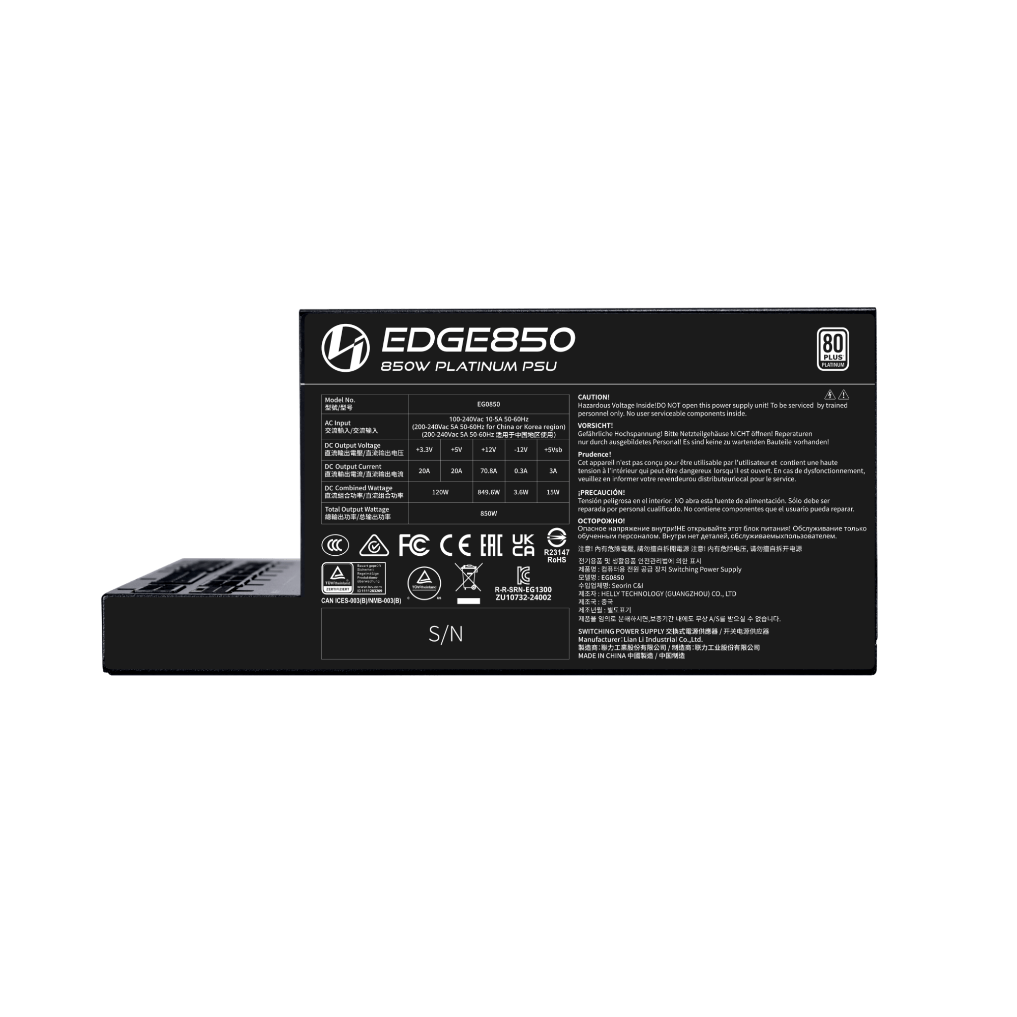 Блок питания Lian Li EG0850 BLACK 850W Full Modular, 80+ PLATINUM, КПД 92% G9P.EG0850.BE00.EU