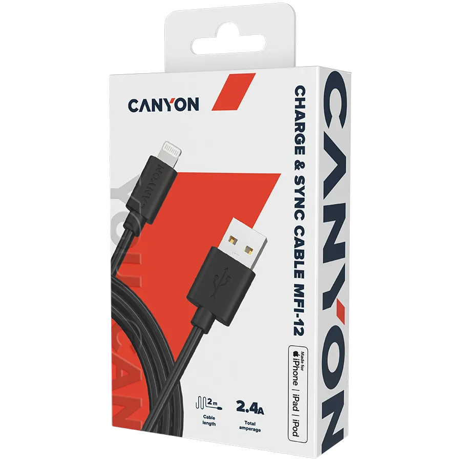CANYON cable MFI-12 USB-A to Lightning 2m Black