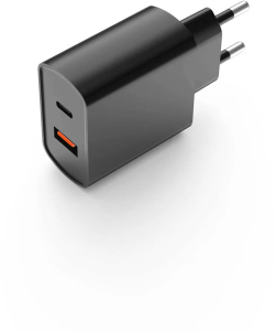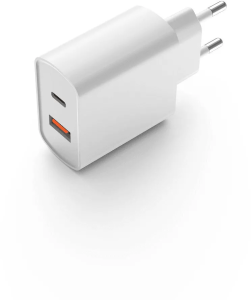 Компактный сетевой адаптер с возможностью одновременной зарядки двух устройств. Оснащён портами USB-C и USB-A, подходит для смартфонов, наушников и других мобильных устройств. Оптимален для дома, офиса и поездок.
