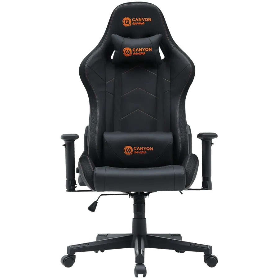 Колеса прорезинены, что позволяет использовать кресло на полу с любым покрытием. Отделка экокожа PU, легкая в уходе и устойчивая к деформации. В комплект кресла входят две подушки, поясничной поддержки и под голову, изготовленные из ткани или экокожи PU.