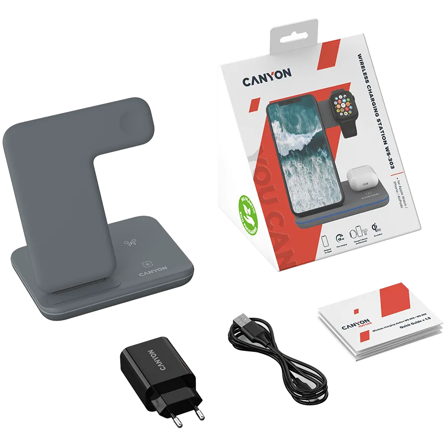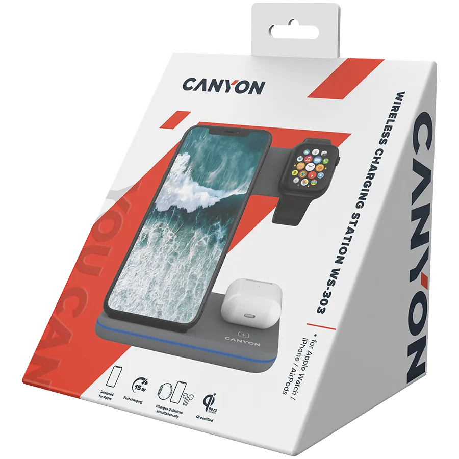 CANYON wireless charger WS-303 15W 3in1 Gray