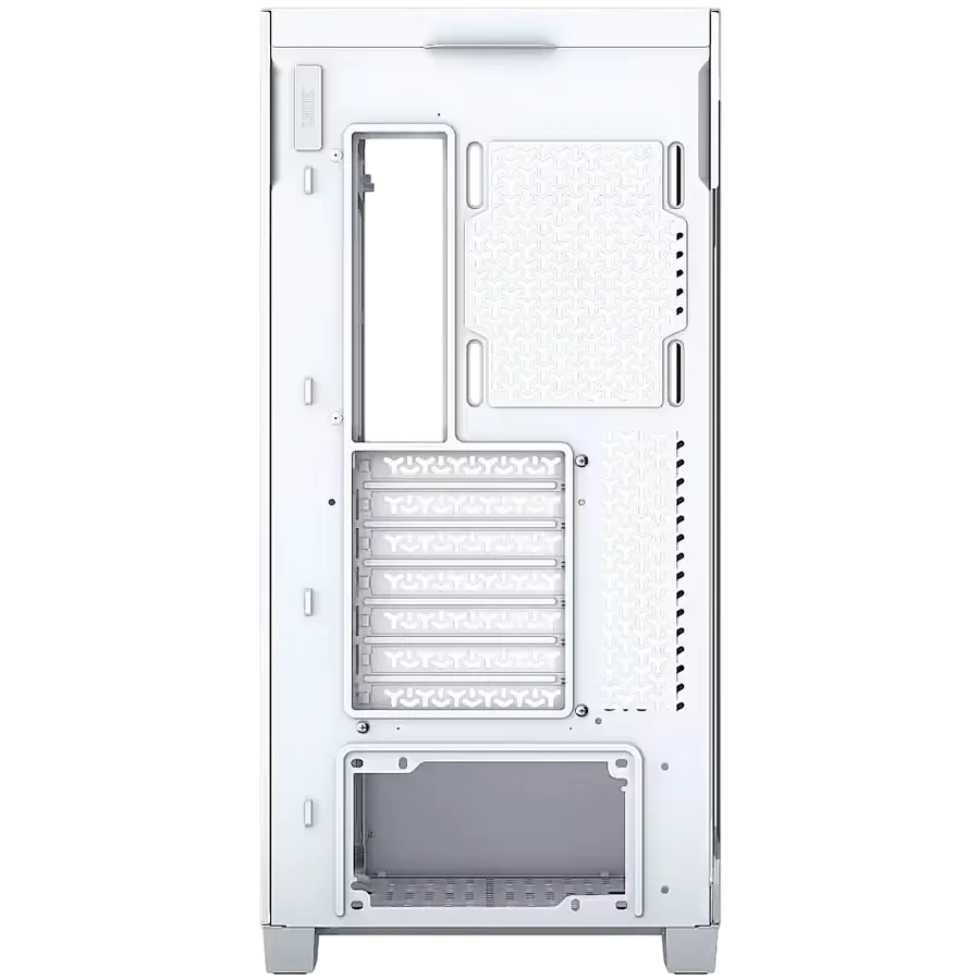 Передняя стойка между фронтальной и боковой стеклянными панелями отсутствует, и тем самым устраняется основное препятствие для чистого и свободного обзора вашей потрясающей сборки. Ваша система будет выглядеть рациональнее и аккуратнее благодаря опорной пластине материнской платы, которая поддерживает основные модели с задним расположением разъемов от ASUS и MSI.