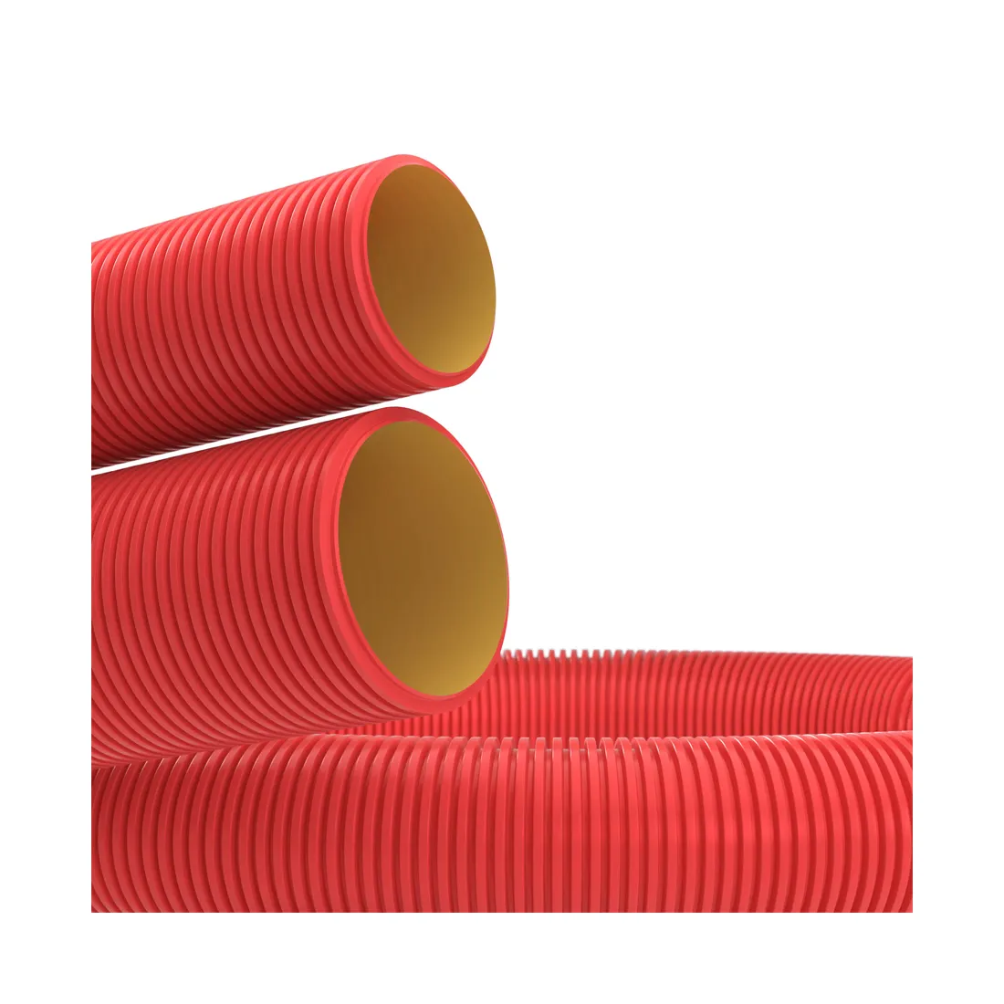 Двустенные гибкие электротехнические трубы могут использоваться как для прокладки кабеля, так и для организации ливневой организации. В первом случае удобнее использовать трубы с протяжкой - она позволяет легко проложить кабель во внутреннем пространстве трубы. Труба имеет высокую кольцевую жесткость. Диаметр 110 мм, поставляется бухтами по 50 метров.