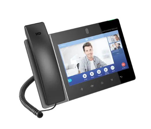 Package Contents: GXV3480 phone, headset with cable, stand, universal power adapter, network