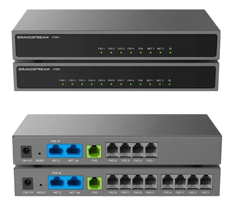 The analog FXO gateway series of FXO gateways HT841 and HT881 allow you to create a VoIP system with fast deployment for companies of any size. Using these gateways, you can easily combine several objects and all devices in the office into an IP PBX network and place it locally or in any selected location to simplify deployment. The HT8x1 series gateways have FXO and FXS ports that support remote calls on the PSTN network. Advanced telephony features, simple automatic configuration and excellent communication quality make the HT8x1 series gateways ideal VoIP solutions for business.