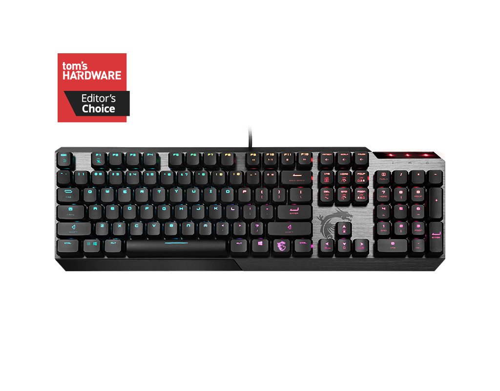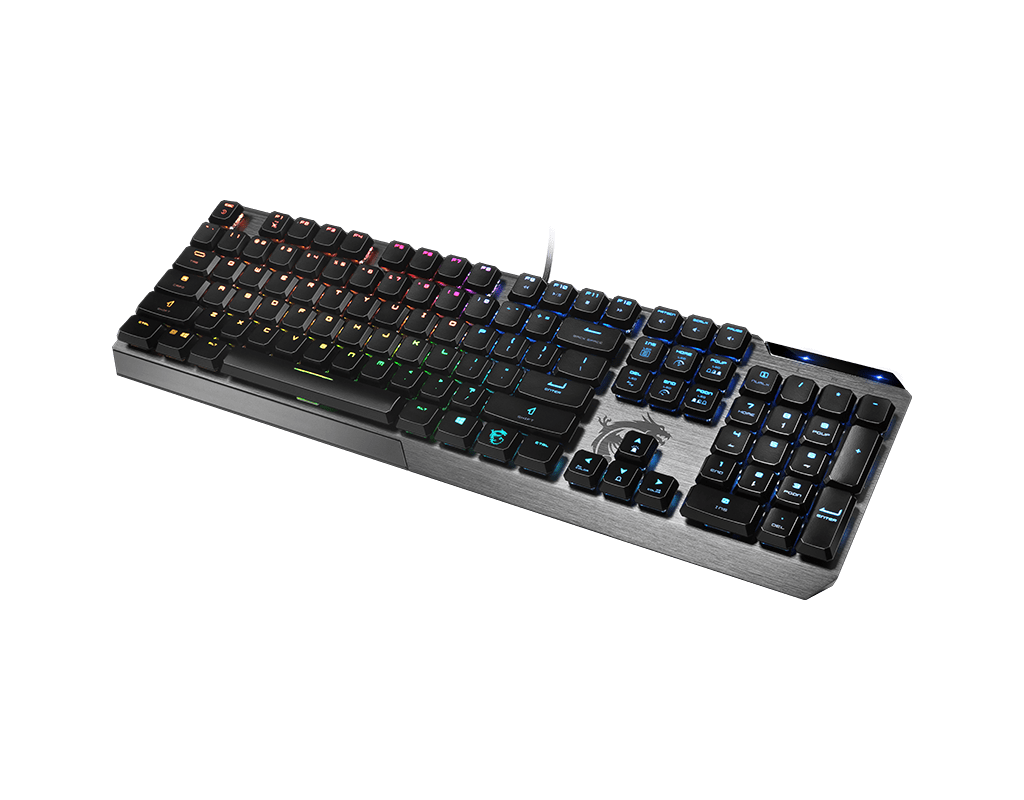 Низкопрофильные механические переключатели: скоростные, точные, долговечные. Тонкий и легкий корпус. Эргономичная конструкция помогает уменьшить напряжение в запястьях. Металлическая поверхность корпуса и клавиши в форме восьмиугольника. Полноцветная подсветка с индивидуальной настройкой для каждой клавиши. Специальная прокладка на нижней панели предотвращает скольжение по столу. Настройка параметров устройства с помощью приложения Dragon Center.