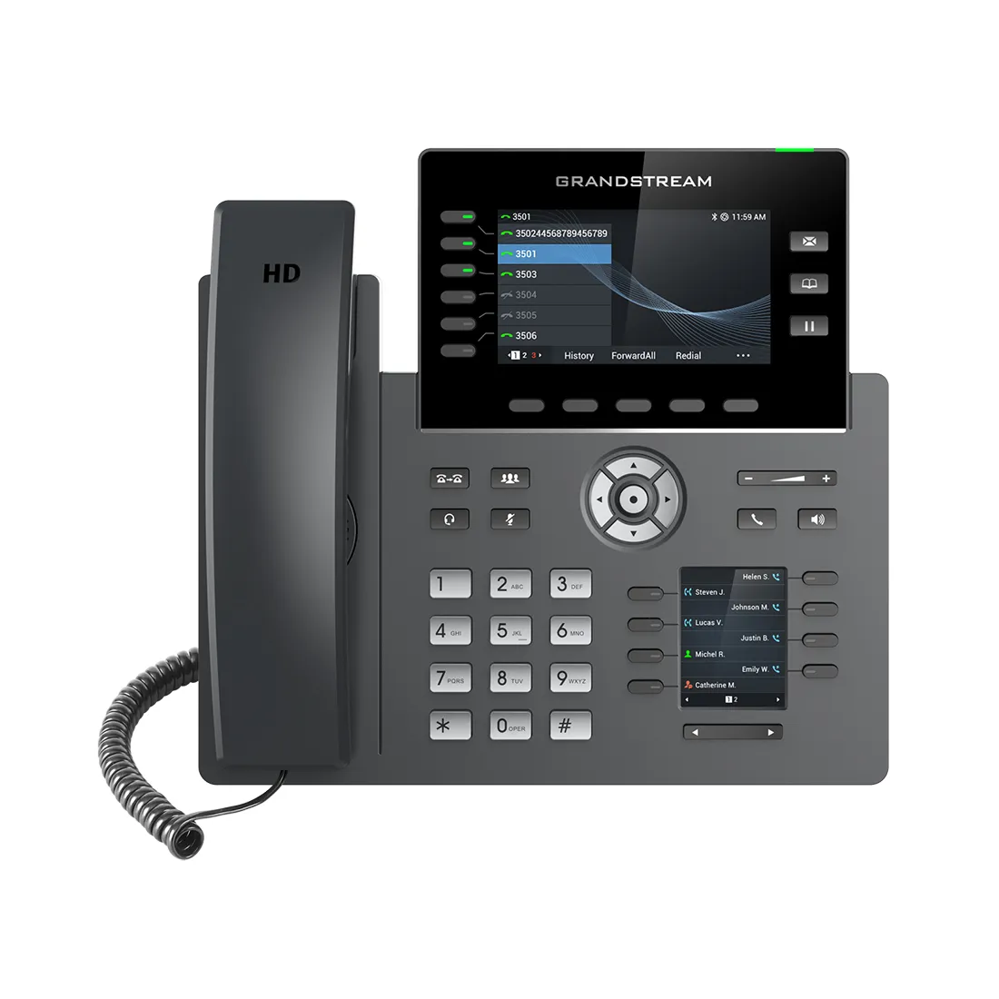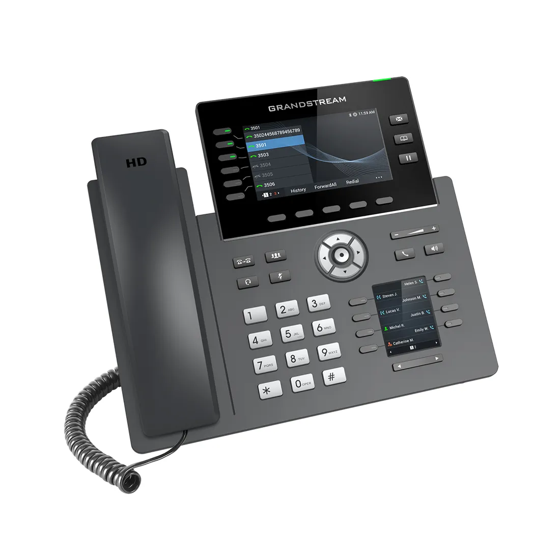 Модель GRP2616 - это современный IP-телефон операторского класса, разработанный для массового развёртывания, он имеет функцию автоматической настройки параметров (zero-touch provisioning) и простое управление. Эта модель имеет поддержку 6 линий и 16 SIP-аккаунтов, имеет элегантный внешний вид и целый ряд современных функций, включая встроенные модули WiFi 6 и Bluetooth, 48 виртуальных многоцелевых кнопок (MPKs), два гигабитных порта и многое другое. Он оборудован 4,3 дюймовым цветным ЖК-экраном со сменными лицевыми панелями, позволяющими легко изменить логотип и дополнительным 2,4 дюймовым экраном. Серия GRP обладает средствами защиты операторского класса, которые обеспечивают безопасность корпоративного класса, включая защищённую загрузку, двойной образ прошивки и зашифрованное хранилище. Возможности облачной настройки и централизованного управления: GRP2616 имеет поддержку Системы управления устройствами от компании Grandstream (GDMS), которая обеспечивает централизованный интерфейс для конфигурации, настройки, управления и контроля развёртывания оконечных устройств от компании Grandstream. GRP2616, созданный для нужд офисных работников и разработанный для легкого развертывания на предприятиях, поставщиками услуг и пр. - является простым в использовании и развёртывании устройством.