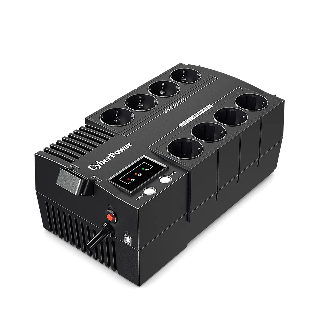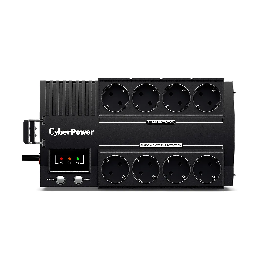 CyberPower BS850E - эта серия ИБП CyberPower предоставляет домашним и офисным пользователям надежное резервное электропитание для персональных компьютеров и других электронных устройств от перепадов, скачков, провалов напряжения и прочих инцидентов в электроснабжении. Конструкция с гибкими возможностями монтажа обеспечивает различные варианты установки, включая горизонтальную установку, размещение в шкаф и настенное крепление. Программное обеспечение для управления электропитанием PowerPanel® Personal (подключение через USB-порт) автоматически сохраняет компьютерные файлы и безопасно выключает систему во время отключения электроэнергии. PowerPanel позволяет производить запланированные отключения и самодиагностику, контролировать показания напряжения и приблизительное время автономной работы.