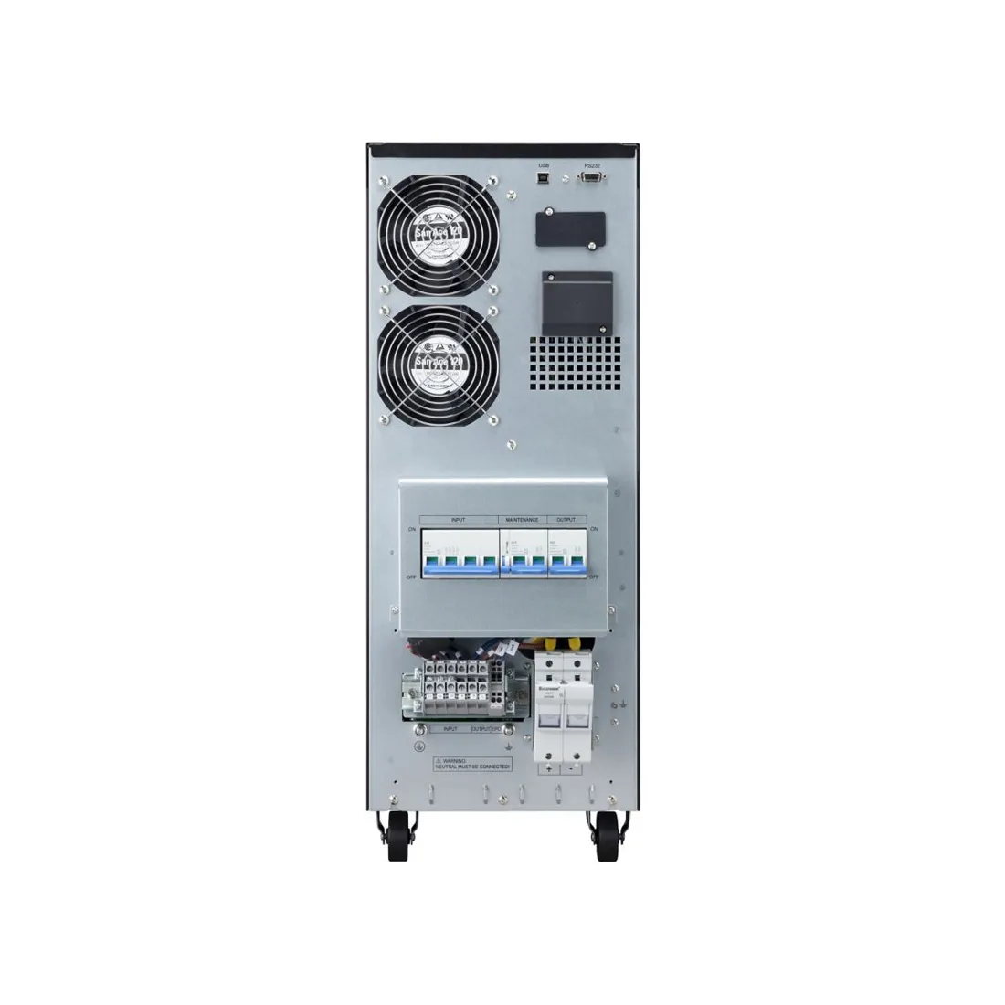• Eaton 9E постоянно контролирует состояние электропитания и регулирует напряжение и частоту благодаря онлайн-топологии с двойным преобразованием.