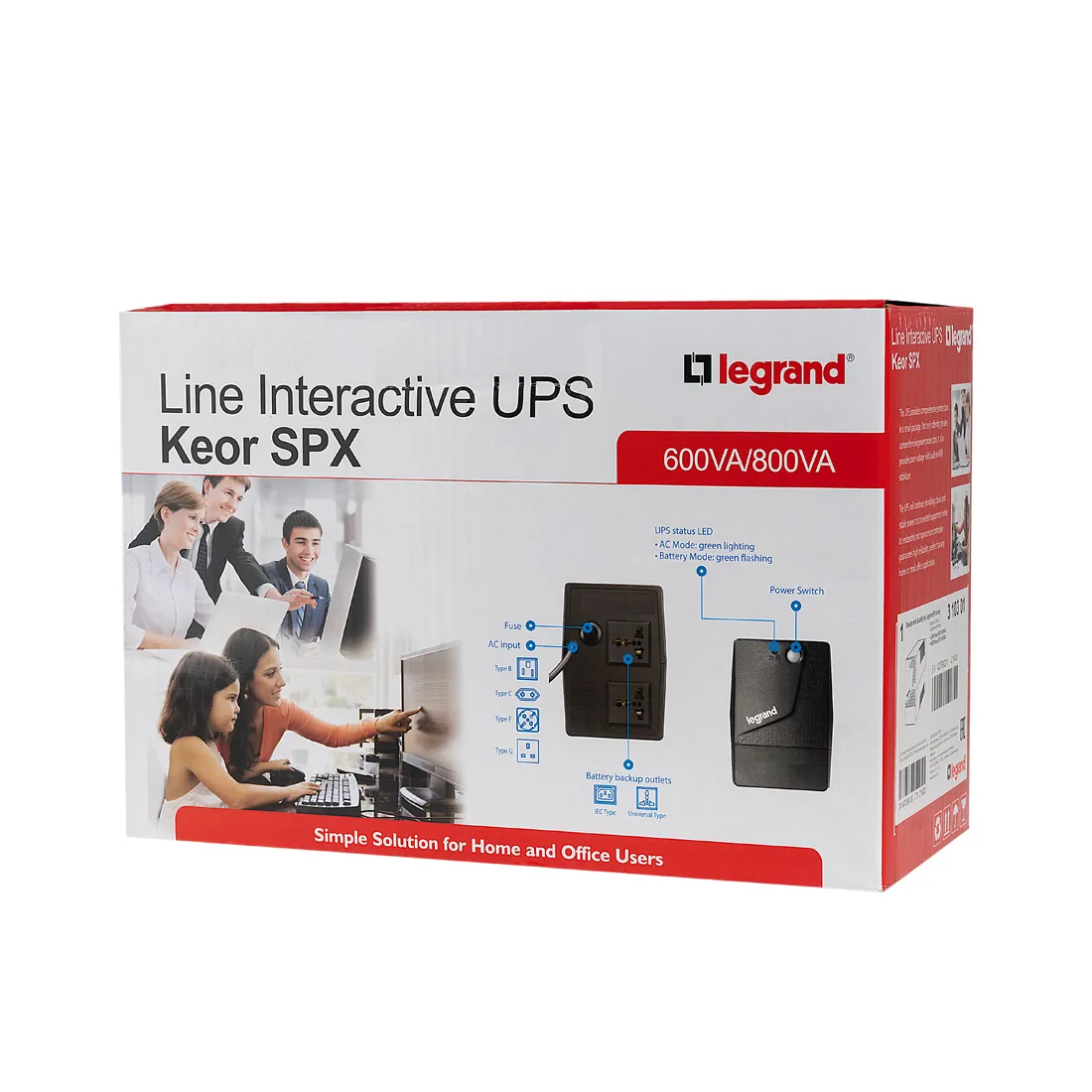 Keor SPX- однофазный ИБП для компьютеров, аудио и видеоаппаратуры. Полная защита от разряда и перегрузки, короткого замыкания и перегрева. Кнопка питания и светодиодные индикаторы; визуальная и звуковая сигнализация состояния ИБП. Автоматическое отключение и запуск: при исчезновении или низком качестве сетевого электроснабжения ИБП переходит на работу от батареи и отключается, если продолжительность сбоя электроснабжения превышает время автономной работы. При восстановлении электроснабжения ИБП запускается автоматически.