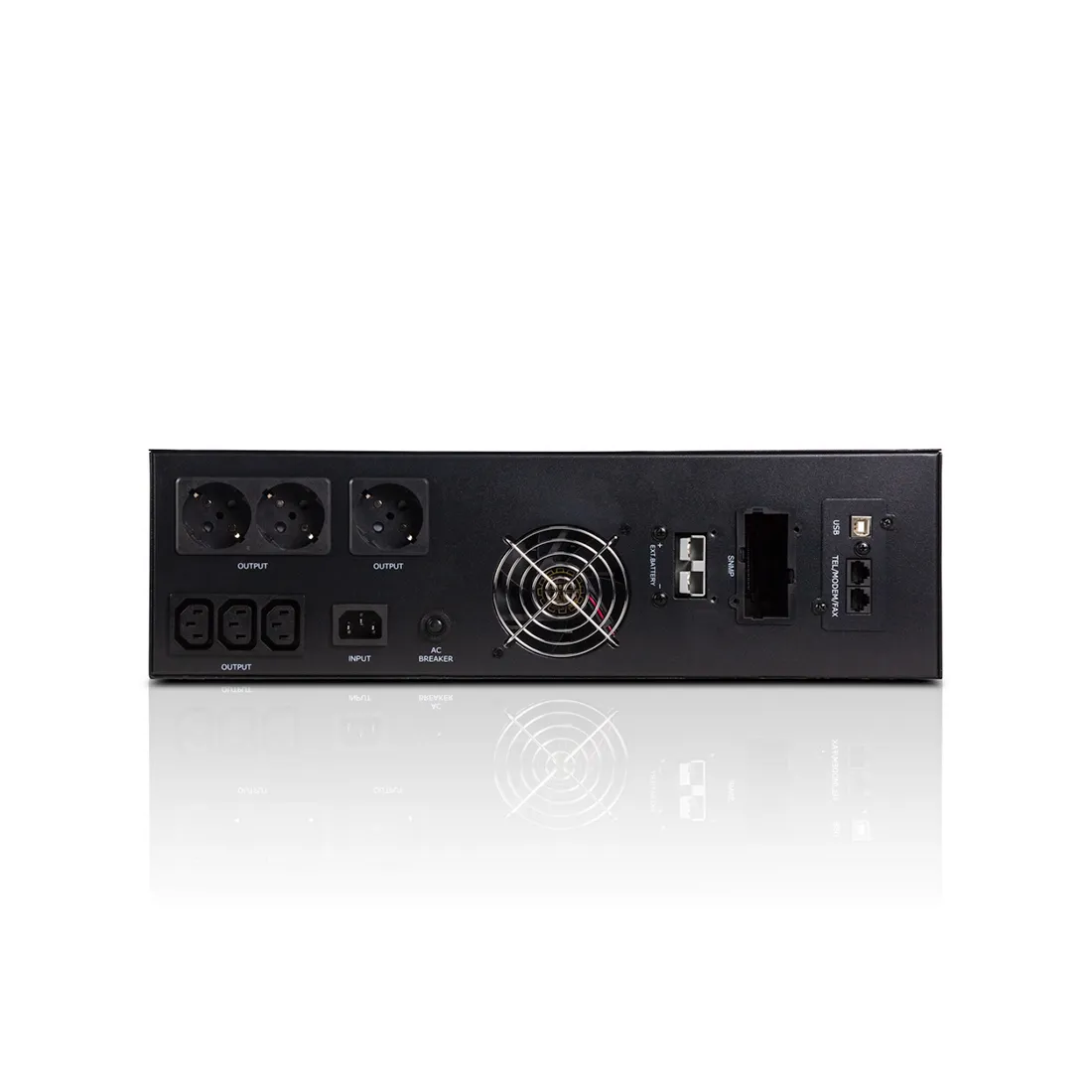 Используется для защиты питания файловых серверов и АТС, а также любого другого оборудования, предъявляющего повышенные требования к качеству сетевого электропитания. Принцип работы состоит в двойном преобразовании (double conversion) тока. Сначала входное переменное напряжение преобразуется в постоянное, затем обратно в переменное напряжение с помощью обратного преобразователя (инвертора). При потере питания в городской сети, время переключения в автономный режим равно нулю. ИБП с внешним подключением батарейного блока, позволяет индивидуально конфигурировать время автономной работы. ИБП оснащен интерфейсными портами USB/RS-232, благодаря которым можно наблюдать за параметрами работы ИБП. Пришла на замену модели PTX-3KL-LCD