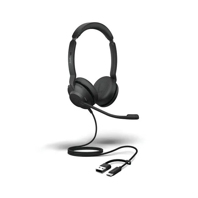 A wired headset with a headband. USB C/A connection, Plug-and-play. OnEar headphones, ergonomic tilt of ear pads made of new foam material "intelligent foam" - improved passive noise reduction; new chipset; 28 mm speakers, 2 microphone technology; Busylight occupancy indicator; call control on the earphone