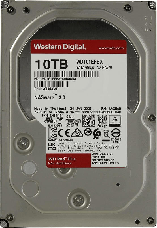 Жесткий диск для NAS систем HDD 10Tb Western Digital RED Plus SATA6Gb/s 3.5" 256Mb 7200rpm WD101EFBX