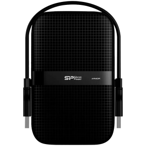 Silicon Power Armor - A60 2TB Portable HDD USB 3.2 Gen1 Black, Shockproof MIL-STD 810G Method 516.6 Procedure IV, Water-resistant IPX4, LED light