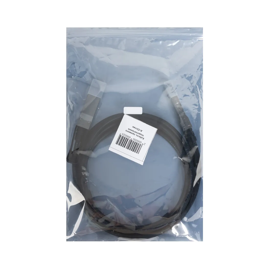 Кабель выполнен по технологии Direct Attach Cable (DAC) и оснащён встроенными разъёмами QSFP+ с обеих сторон (QSFP+ to QSFP+). Пассивная конструкция обеспечивает стабильное соединение без использования оптических трансиверов, снижая энергопотребление и стоимость инфраструктуры.