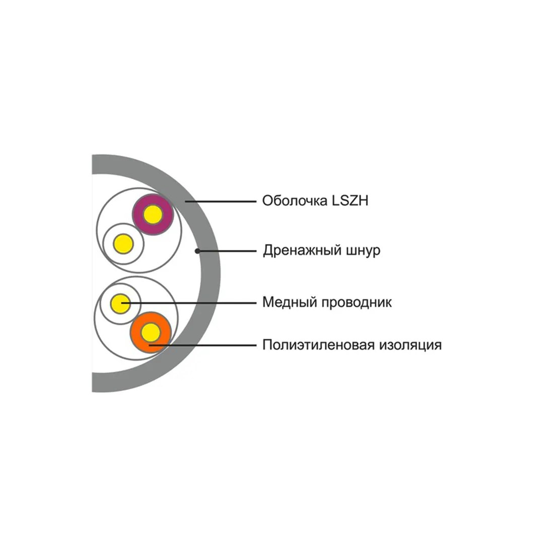 Это неэкранированный (UTP) 4 - х парный кабель 5e категории. Благодаря внешней LSZH оболочке применяется при высоких требованиях к пожарной безопасности. Отличается низким дымовыделением и не содержит опасных для здоровья галогенов.
