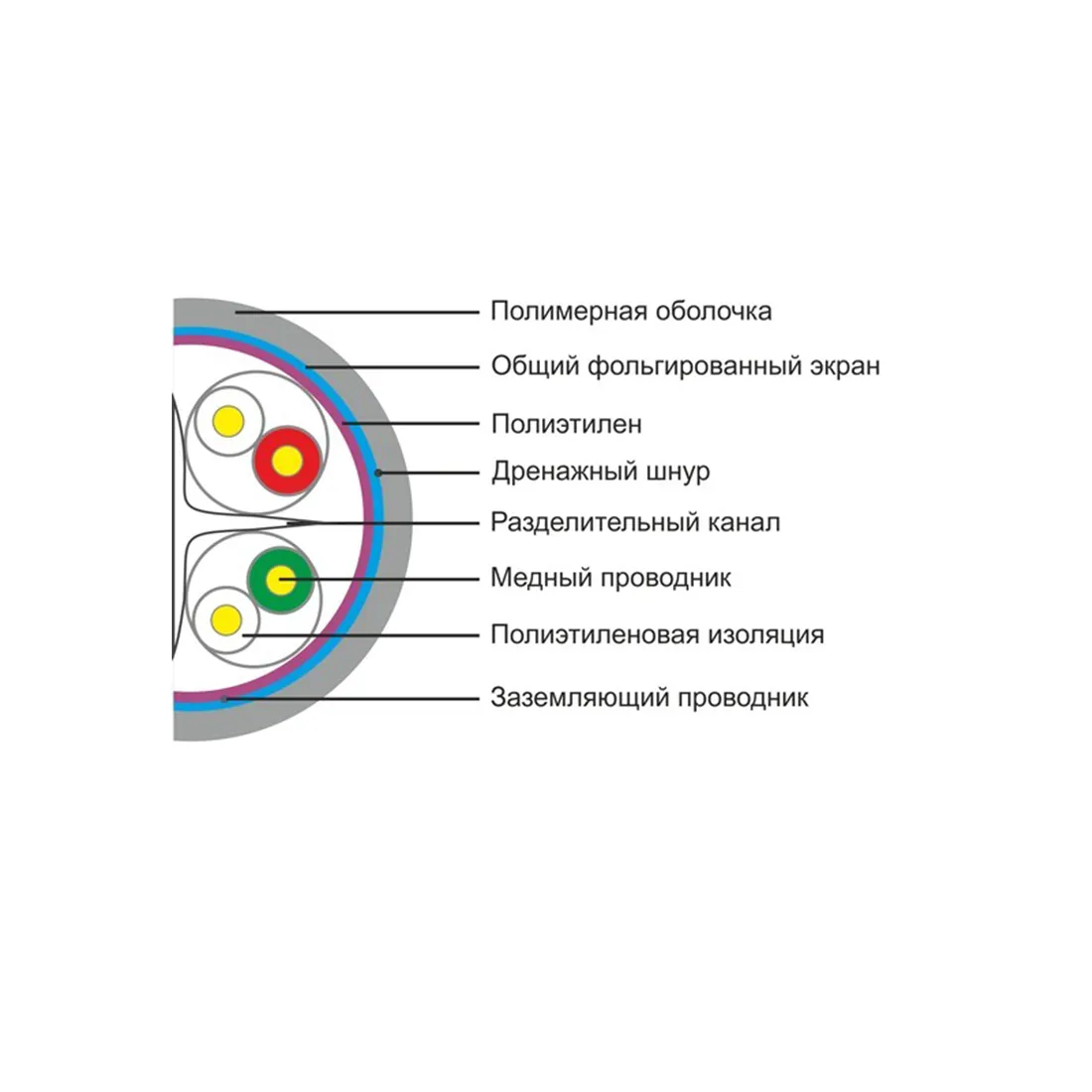 Это экранированный (FTP) 4 - х парный кабель 6 категории. Защищён одним общим экраном в виде фольги. Экран снижает уровень электромагнитного излучения кабеля и повышает защищённость от внешних помех. Используется при значительном уровне внешних наводок (производственные помещения) или при повышенных требованиях к информационной безопасности. В отличии от кабеля 5e категории имеет жилу 0,574 мм. что позволяет работать на частоте 250 Мгц. В центре кабеля проходит разделительный канал, препятствующий переплетению пар между собой. Также по стандарту 6 категории, каждая пара имеет свой шаг скрутки. Кабель имеет стандартную PVC оболочку, применяется при прокладке внутри помещений.
