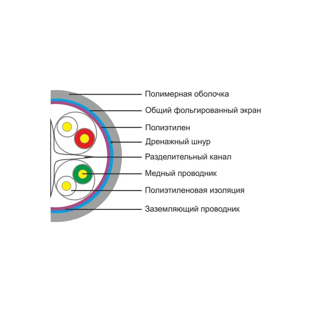 Это экранированный (FTP) 4 - х парный кабель 6 категории. Защищён одним общим экраном в виде фольги. Экран снижает уровень электромагнитного излучения кабеля и повышает защищённость от внешних помех. Используется при значительном уровне внешних наводок (производственные помещения) или при повышенных требованиях к информационной безопасности. В отличии от кабеля 5e категории имеет жилу 0,56 мм. что позволяет работать на частоте 250 Мгц. В центре кабеля проходит разделительный канал, препятствующий переплетению пар между собой. Также по стандарту 6 категории, каждая пара имеет свой шаг скрутки. Кабель имеет LSZH оболочку, применяется при высоких требованиях к пожарной безопасности.