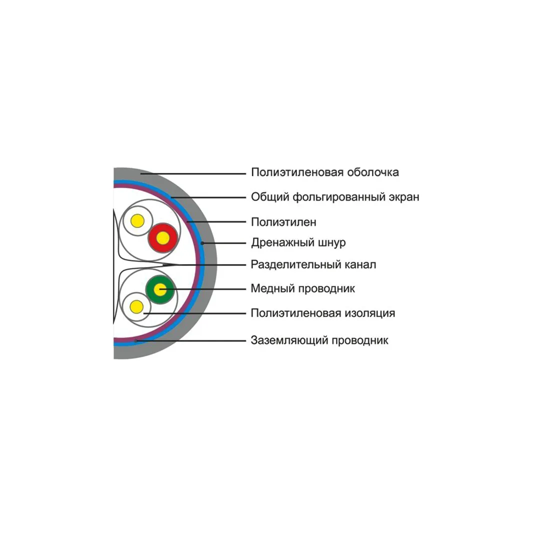 Это экранированный (FTP) 4 - х парный кабель 6 категории. Защищён одним общим экраном в виде фольги. Экран снижает уровень электромагнитного излучения кабеля и повышает защищённость от внешних помех. Используется при значительном уровне внешних наводок (производственные помещения) или при повышенных требованиях к информационной безопасности. В отличии от кабеля 5e категории имеет жилу 0,574 мм., что позволяет работать на частоте 250 Мгц. В центре кабеля проходит разделительный канал, препятствующий переплетению пар между собой. Также по стандарту 6 категории, каждая пара имеет свой шаг скрутки. Кабель имеет стандартную PE оболочку, применяется при прокладке вне помещений.