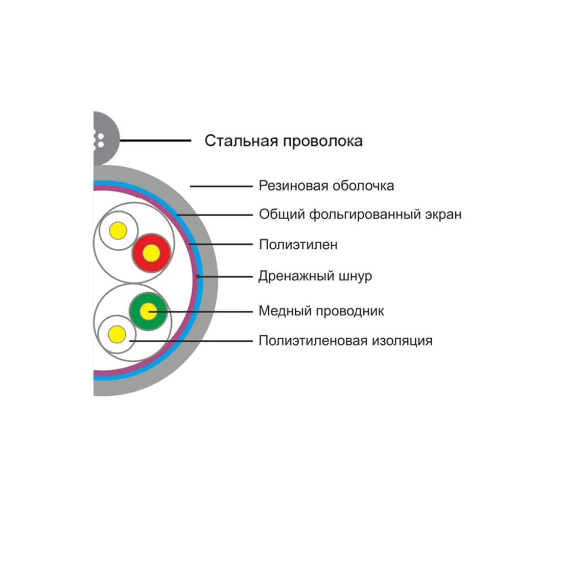 Это экранированный (FTP) 4 - х парный кабель 5e категории, со стальным тросом. Благодаря PE оболочке применяется при прокладке вне помещений. Отличается повышенной термостойкостью и не восприимчивостью к воздействию прямых солнечных лучей. Используется для создания компьютерных сетей стандарта 100 Мегабит/сек или 1 Гигабит/сек. 100 метровый сегмент успешно прошёл тестирование на сертифицированном приборе Fluke.