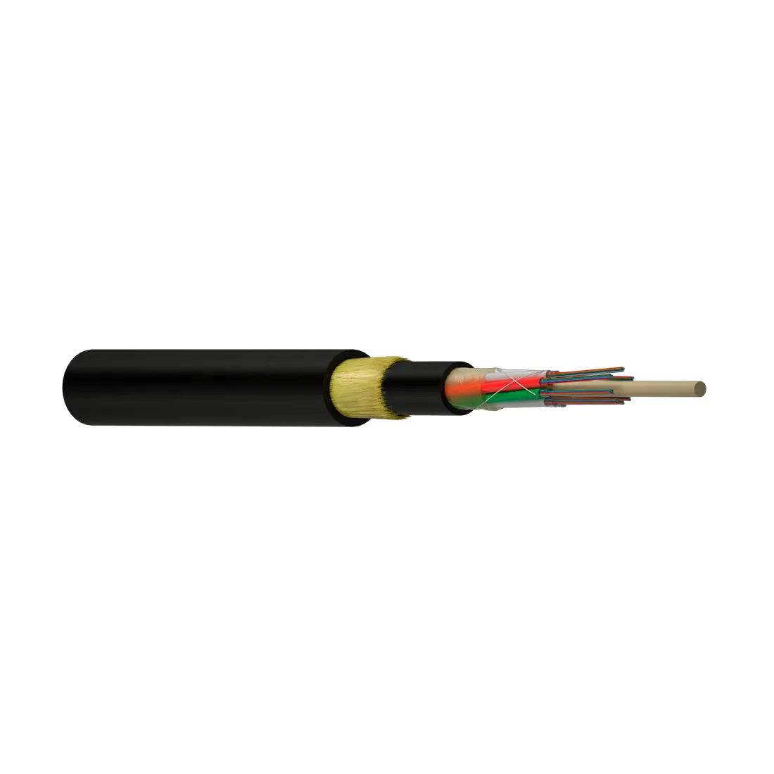 • Центральный силовой элемент — стеклопластиковый пруток, придающий кабелю продольную прочность и устойчивость к растягивающим нагрузкам.