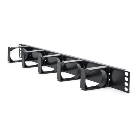 Кабельный органайзер, чёрный 1U. Имеет металлическую основу и 5 пластиковых колец для удерживания кроссовых шнуров, улучшая тем самым эстетику распределительного пункта. Нет необходимости применять дополнительные монтажные инструменты. Стандарт 19 дюймов. Облегчает конфигурирование и внесение изменений в системе.