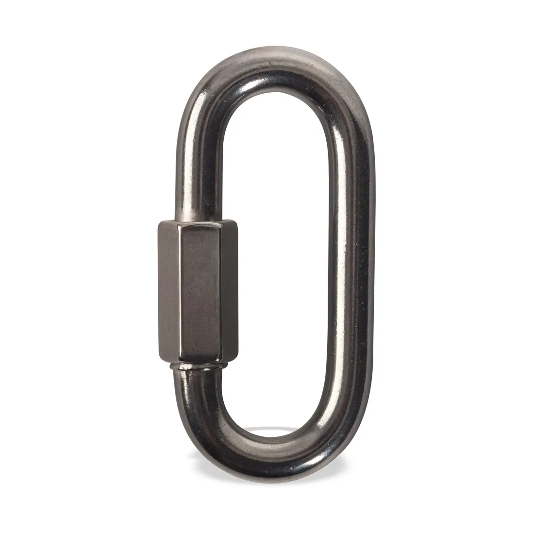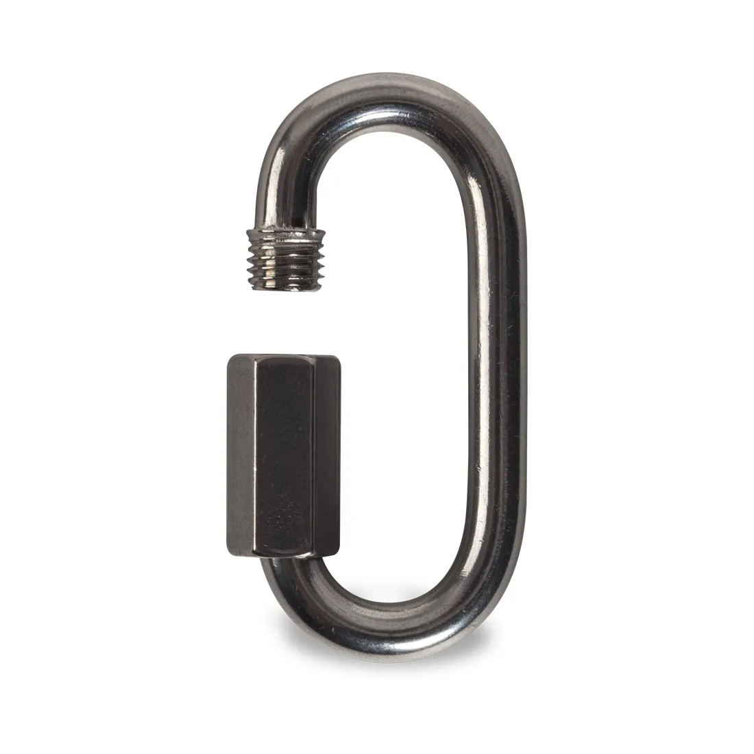 Карабин винтовой оцинкованный широко используется для соединения между собой любых видов цепей и для проведения такелажных работ. Изготовлен данный вид крепления из прочной углеродистой стали, которая пассирована, покрыта цинковым сплавом. Это обеспечивает карабину дополнительную надежность и долговечность даже в агрессивных условиях внешней среды. Оцинковка увеличивает антикоррозийные свойства стали. Карабин винтовой необходимо выбирать такого размера, который соответствует диаметру поперечного сечения используемой цепи или троса. Карабин рекомендуется использовать при проведении всех видов погрузок, подъемных работ, при транспортировке габаритных грузов. Он довольно прост в использовании и установке, обеспечивая высокую надежность соединения. Используется для соединения звеньев цепи. .