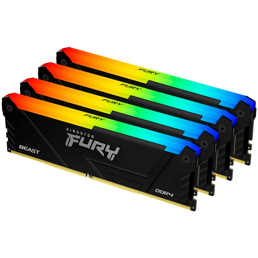 Kingston 64GB 3200MT/s DDR4 CL16 DIMM (Kit of 4) 1Gx8 FURY Beast RGB
