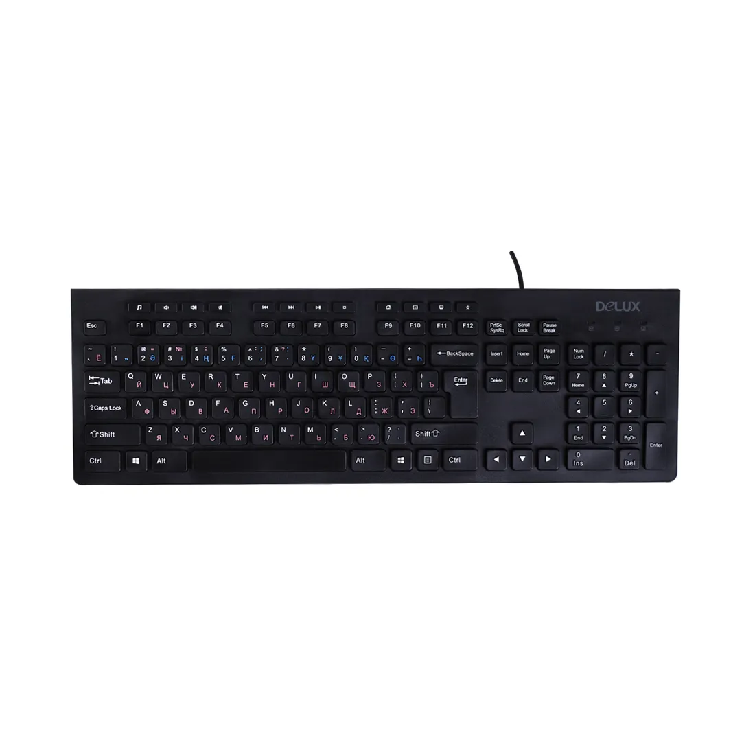 Классическая мембранная клавиатура Delux DLK-180UB имеет строгий, лаконичный дизайн и деально подходит для повседневной работы за компьютером. Раскладка клавиатуры, разработанная специально для среднеазиатского региона, имеет красивый и ровный шрифт, нанесена при помощи точного лазера и защищена от стирания УФ-покрытием.