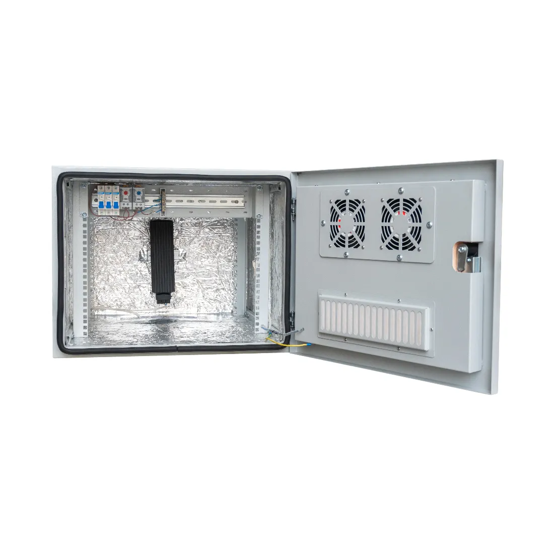 Комплектация - Вентилятор 120мм 220В 2 шт., Обогреватель 100Вт 1 шт., Автомат 16А 3 шт., Термостат NC 1 шт., Термостат NO 1 шт.