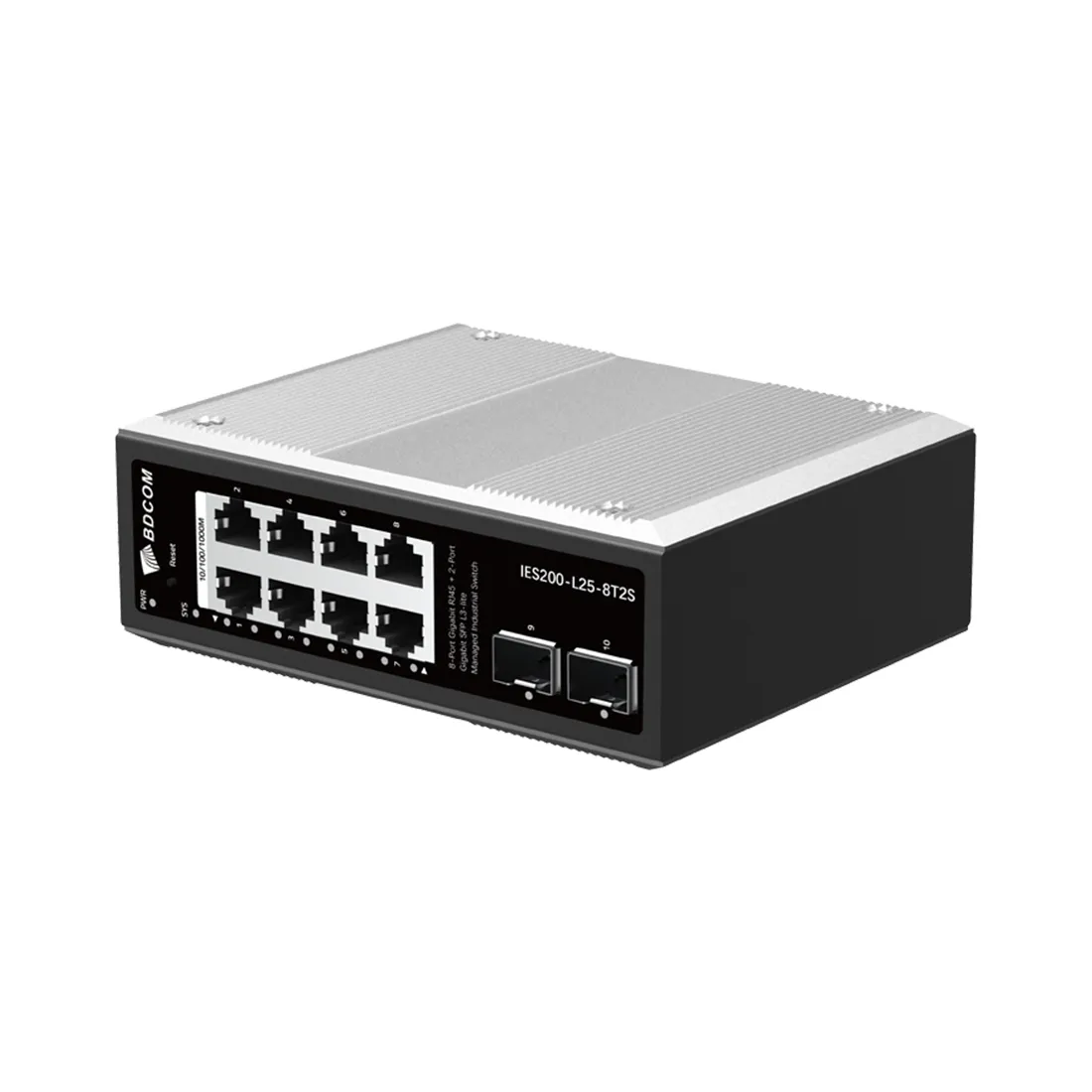 Коммутатор BDCOM IES200-L25-8T2S это промышленный управляемый коммутатор L3-lite с 8 портами Gigabit RJ45 и 2 портами Gigabit SFP, предназначенный для использования в сложных и ответственных сетевых инфраструктурах. Имеет двухпозиционный резервный источник питания DC12-55 В и двухпозиционный вход DC12V.
