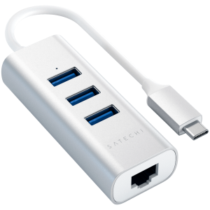 SATECHI Type-C 2-in-1 USB 3.0 Aluminum 3 Port Hub and Ethernet Port Silver