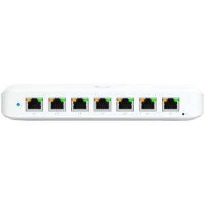 Ubiquiti USW-Ultra-210W-EU compact, Layer 2, 8-port GbE PoE switch with versatile mounting options, 7x GbE PoE+ output ports, GbE port with optional PoE++ input, 202W PoE availability with the included AC power adapter